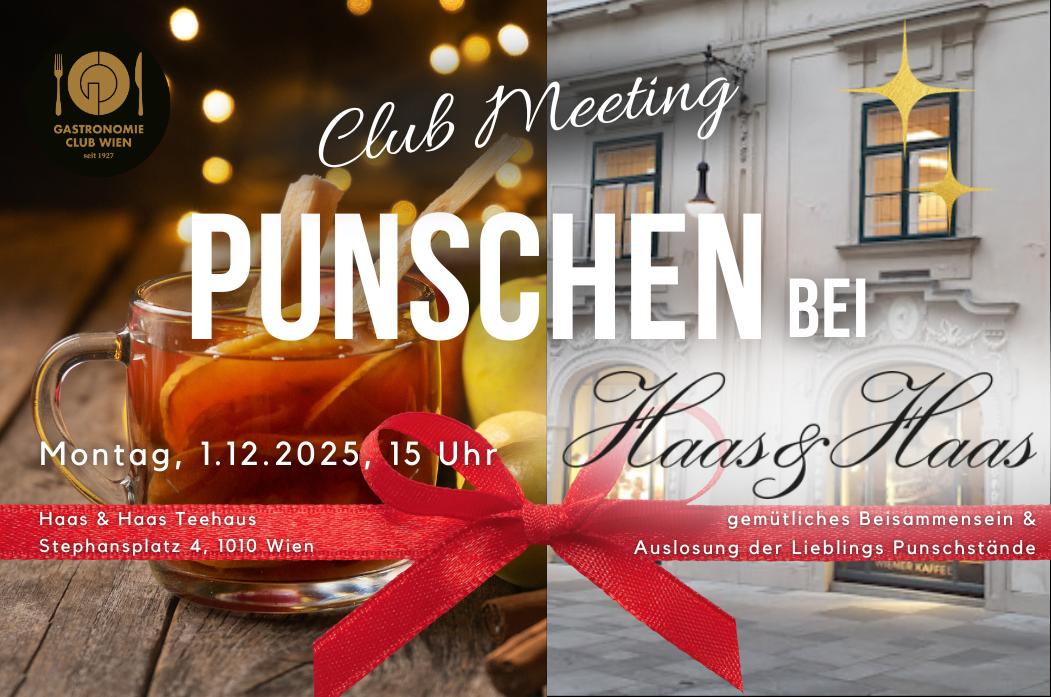 Haas & Haas Punschstand Stephansplatz 4, WienWir laden euch herzlich zu unserem vorweihnachtlichen Club Meeting „Punschen bei Haas & Haas“ ein. Genießt mit uns einen stimmungsvollen Nachmittag im historischen Ambiente des Haas & Haas Punschstand, begleitet von aromatischem Punsch, weihnachtlichen Aromen und feinen Gesprächen unter Branchenkolleginnen und -kollegen. Außerdem loben wir die LIEBLINGS-PUNSCHSTÄNDE 2025 aus! 🗓 Montag, 1. Dezember 2025 ⏰ […]
